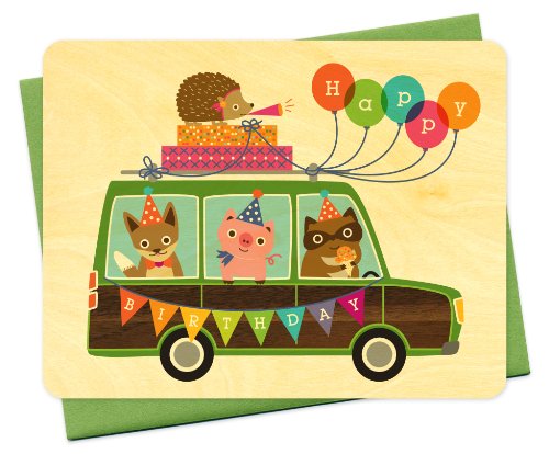 Party Wagon Wood Birthday Card by Night Owl Paper Goods