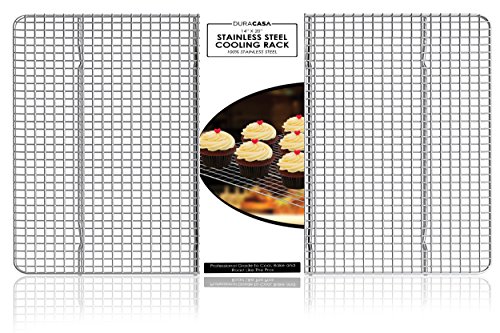 Looking for a cooling rack that is sure to blow the rest out of the water with a delicious, mouthwatering batch of delicacies every time? The DuraCasa Stainless Steel Cooling Rack is the ultimate addition to your baking and provides you with the best option to deliver perfectly set treats on a silver platter. Not only can you cool and decorate your treats on this stainless steel rack, but you can also prevent heat scorching on your countertops while cooling big pots of soup or hot appetizers as well as catch drips from preparing and draining fried or boiled foods.