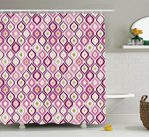 Ambesonne House Decor Collection, Ornament Doodle Pattern Childish Creative Magenta Vertical Classic Fun Image Print, Polyester Fabric Bathroom Shower Curtain, 84 Inches Extra Long, Purple Green White