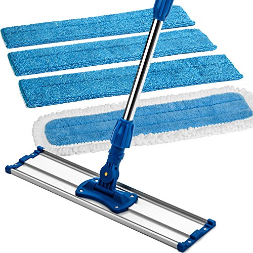 EVERYTHING YOU NEED IN ONE BUNDLE: (3) Microfiber Pads, (1) Dust Pad, Adjustable Stainless Steel Handle 6ft-4ft, Durable Aluminum Mop Head / Frame. This mop can clean every type of floor, including: laminate, tile, pergo, wood / hardwood, and any other floor type. For additional or replacement matching microfiber mop pads search B01IAUKS62, for matching dust pads search B01IAVCEHC.