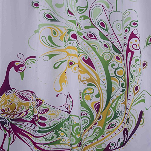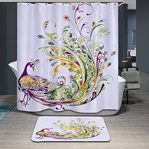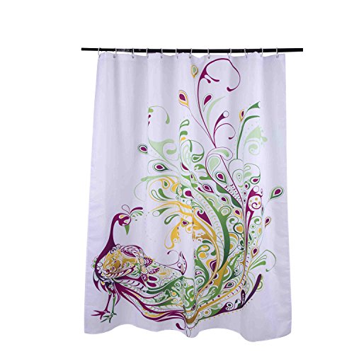 3D Digital Printing Shower Curtain with Hooks (Treated to Resist Deterioration by Mildew and Waterproof) - 72 x 72 inches,Peacock