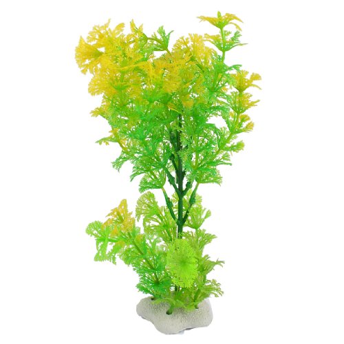 Uxcell Plastic Aquarium Snowflake Leaf Plant, 9-Inch, Green/Yellow