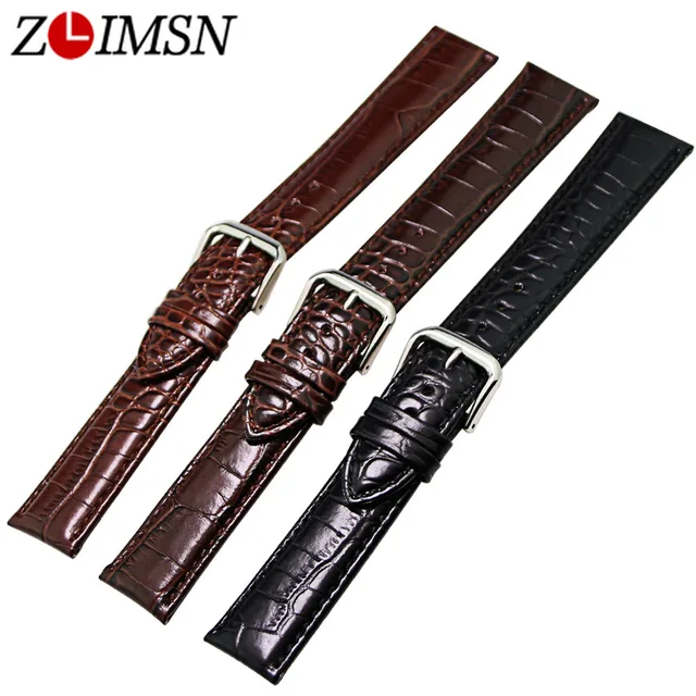 | [해외]ZLIMSN 시계 스트랩 블랙 브라운 정품 가죽 시계 줄 18 미리메터 실버 금속 버클 팔찌 교체 relogio masculino B41 |