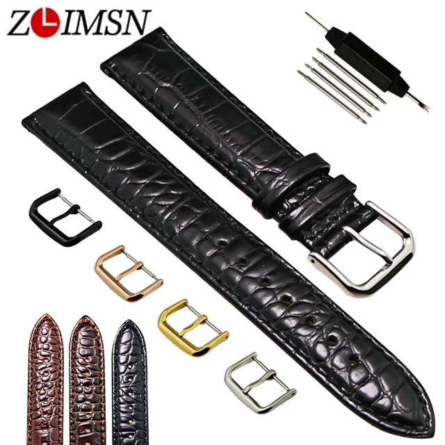 ZLIMSN 시계 스트랩 블랙 브라운 정품 가죽 시계 줄 18 미리메터 실버 금속 버클 팔찌 교체 relogio masculino B41