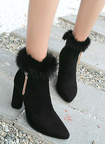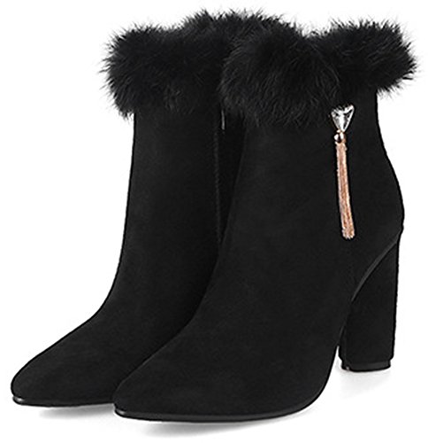 Binding : Apparel Product Description Winter is coming! Do you want a pair of boots both of fashion and warmth? This pair of snow boots is a perfect choice. This lovely shoes features side zipper closure and round toe. The faux fur lined will warm you all winter. You will look chic in their pendant. The sole is made of good rubber. You will feel comfy in their soft bottom. The heels measure 3.5 inches. You will feel comfortable in their mid heels. So you will not feel too tired when walking with them. They are of high quality and durable. Just pick them to show your beauty. 0