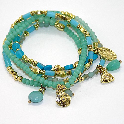 - Are you looking for something fabulous to wear with everything? This bracelet will coordinate perfectly with jeans or dressy outfits. Looks great with a tan!Add This Gorgeous Set of 5 Gold Tone and Aqua Bead Bracelets to your Wardrobe!