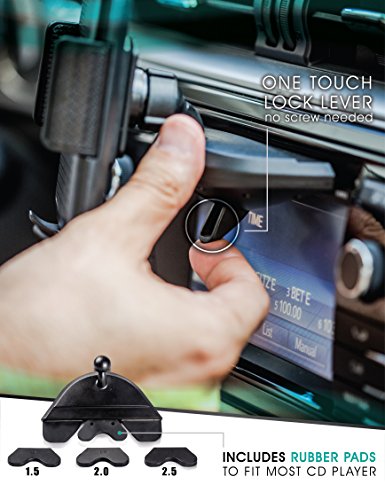 -. Feature : UNIVERSAL CD SLOT CAR MOUNT; forget cheaper holder mounts and accessories with awkward mounting screws, our clever Universal CD Slot Mount is perfect for mounting cell phones or mobile GPS devices up to 6 inch diameter, for easy navigation and hands free use! / MOUNT WITH CASE; tired of constantly removing your case or defender to mount your smart phones? Our Mount securely holds most popular Apple and Android devices with charger and cell phone cases up to 3.62 inches wide, making constantly removing and replacing cases a thing of the past! / CD MOUNT; transforms car or boat CD player slots into a convenient dash vent mounting point, with a 360 degree angled head for easy support, perfect viewing angle, and hands free device control while allowing play of CDs and music! / UNIVERSAL COMPATABILITY; compatible with iPhone 6, 6 plus 5S, 5C, 5, 4S, 4, iPod touch, Samsung Galaxy S2, S3, S4,S5, S6, S6 edge, Note 2, 3, 4,5 Nexus, Motorola Droid Razr HD, Maxx, Nokia Lumia 920, LG G2, G3. G4, Optimus G, HTC One X, S, M, BlackBerry, Sony Xperia and all smartphones up to 6". / ONE TOUCH REMOVAL; easily secures to the bottom and sides of your device with cushioned plastic holders, creating the best, high grip auto dashboard cradle that can be quickly removed with our easy, one touch release button!