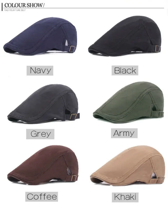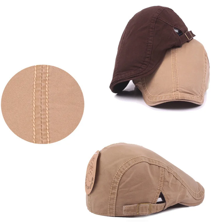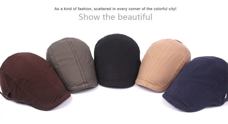 비즈니스 시간 :AM 9:00-오후 11:00, 월요일-토요일 브랜드 패션 빈티지 솔리드 여름 태양 모자 남성 여성 높은 품질 캐주얼 여성 베레모 모자 남성 모자 평면 모자 포장 상세