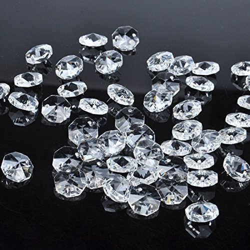 MISHIN 18mm Clear Crystal 2 Hole Octagon Beads Glass Chandelier Decorations Parts,Pack of 50