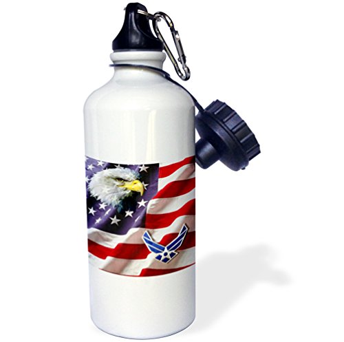 3dRose wb_965_1 USAF Airforce Sports Water Bottle, 21 oz, White