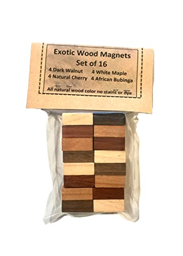 - SMALL MAGNETS IN EXOTIC NATURAL WOOD( Bubinga, Walnut, Cherry, Maple ) FOR YOUR OFFICE OR KITCHEN NEEDS! Don’t use those dangerous “tacks” that ruin walls and poke feet and fingers! Use these wood magnets instead! You get several magnets in a variety of wood colors that will let you use them anywhere you need!