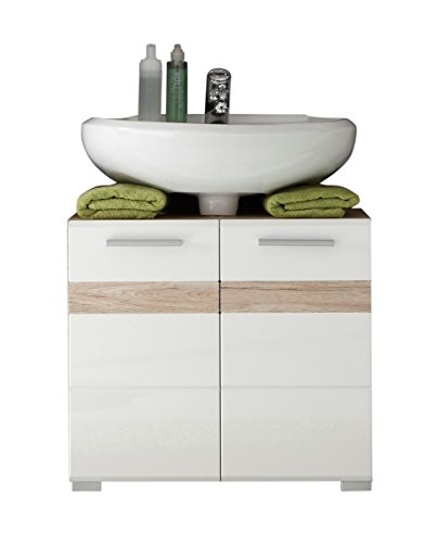 -. Title : trendteam SO30196 Bad Waschbeckenunterschrank Eiche San Remo hell Nachbildung, Fronten in weiß hochglanz, BxHxT 60x56x34 cm