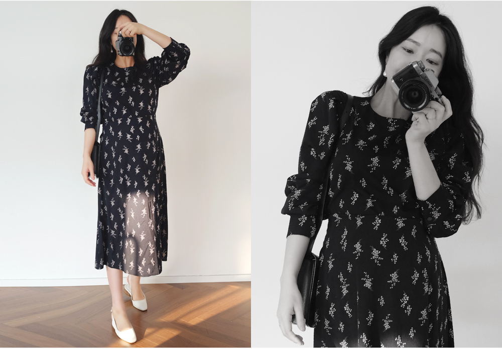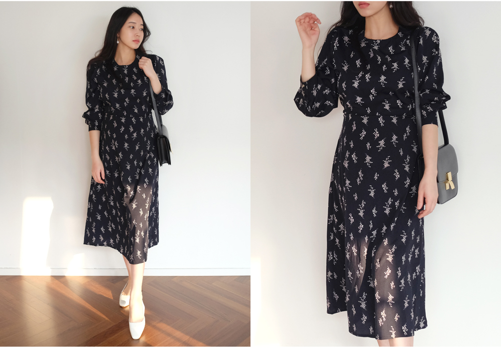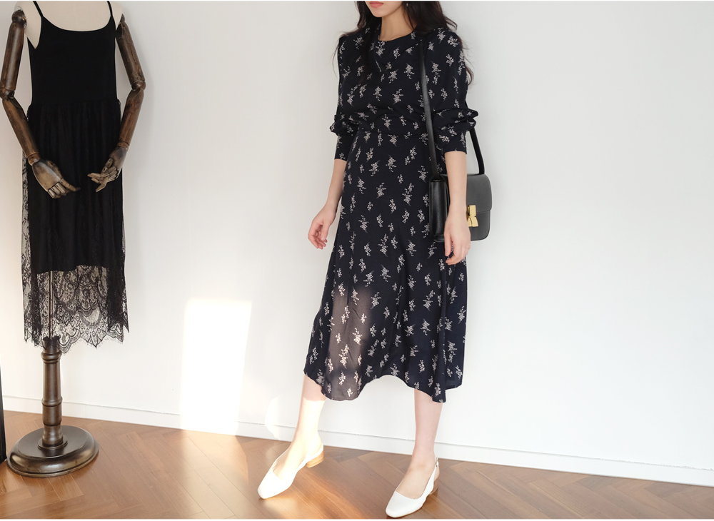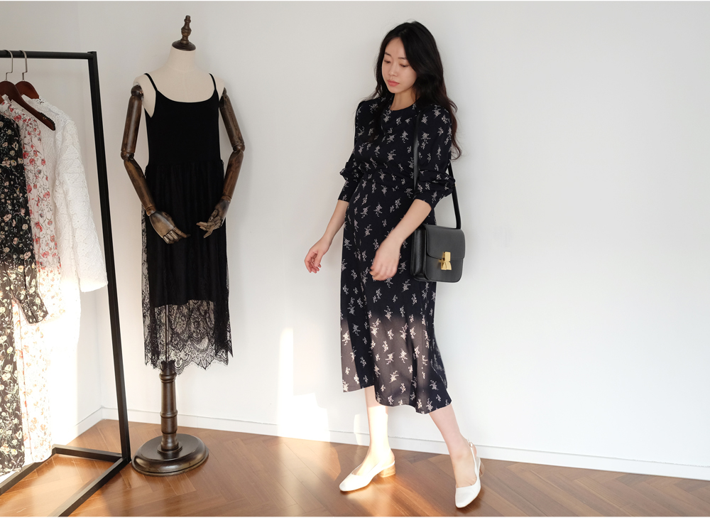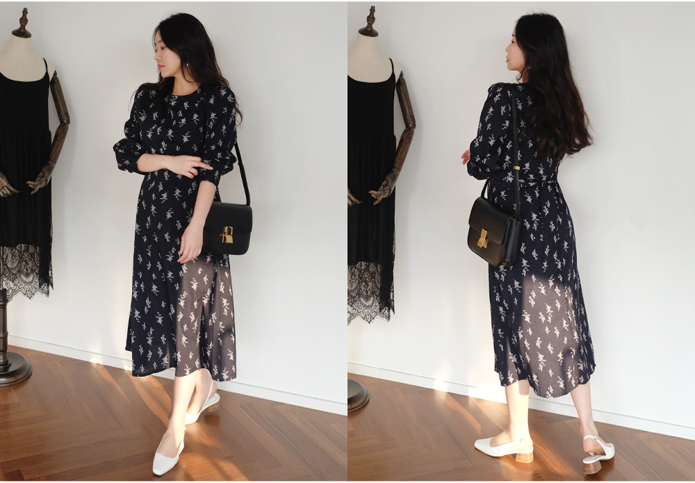 로맨틱하고 차분한 플라워 패턴으로 포인트가 되는 쉬폰 롱 원피스:)