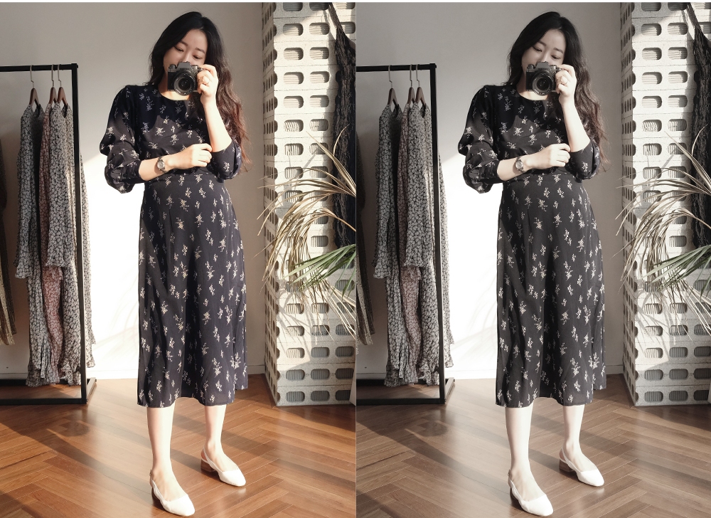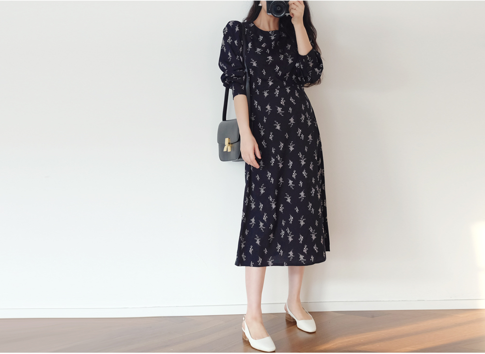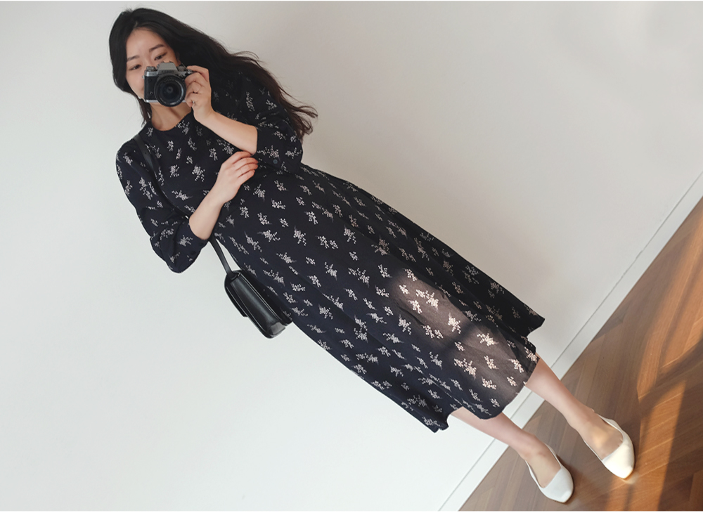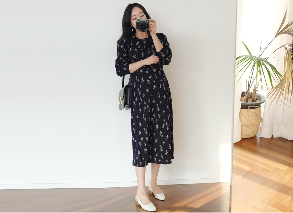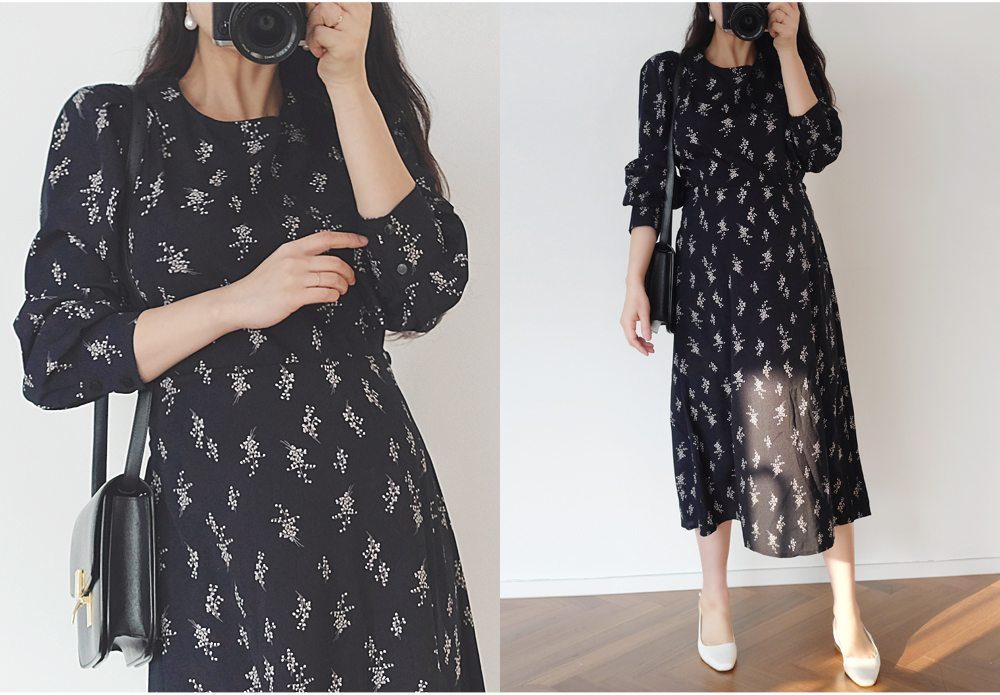 로맨틱하고 차분한 플라워 패턴으로 포인트가 되는 쉬폰 롱 원피스:)