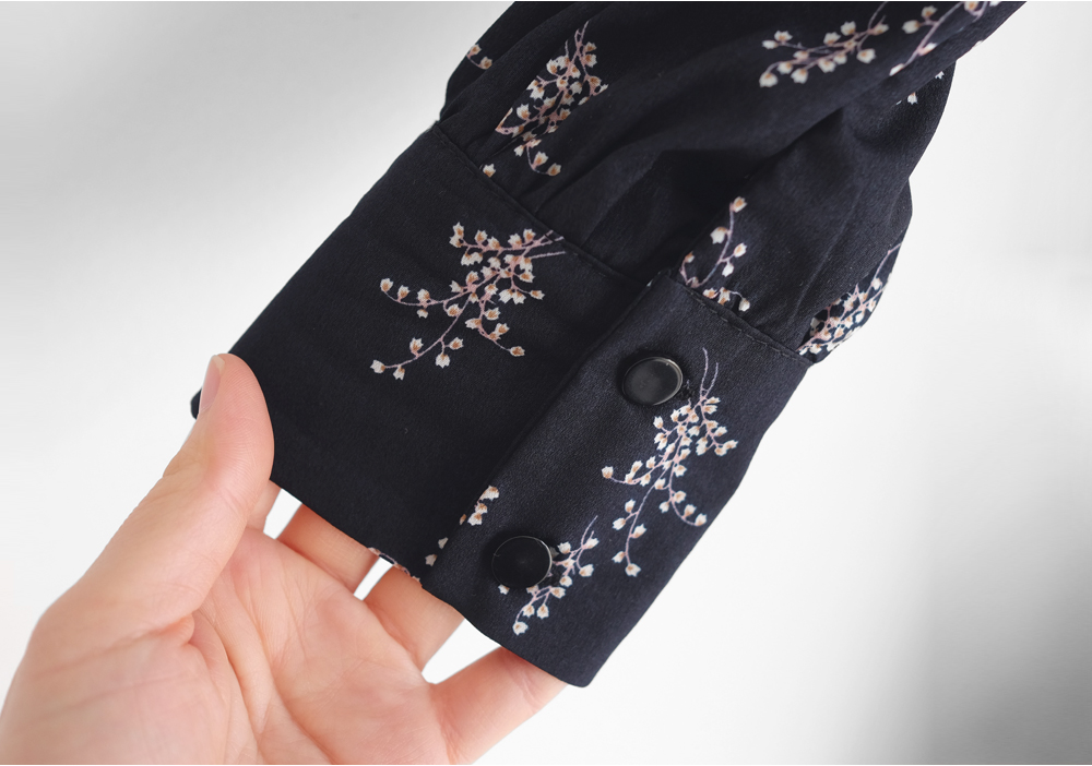 쉬폰 소재로 구김이 적고 찰랑거려서 거슬림 없이 라인에 맞춰서