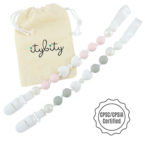 PERFECT FOR BABIES: Holds pacifiers and teething toys, keeping them close to baby and off the floor. Attach to clothes, blankets, toys, strollers, or car seats. Silicone beads provide instant teething relief and gum massage. Premium quality chewable silicone beads. Stimulates visual, motor, sensory development.