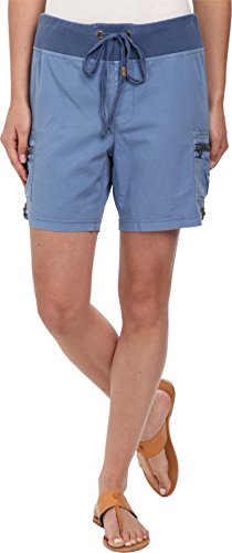 Pull-on short in lightweight woven stretch cotton. Mid rise and regular fit. Stretch cotton waistband with a drawstring tie. Side patch pockets with zipper closure and shirred detailing. Faux fly. 93% cotton, 3% lycra; Contrast: 95% cotton, 3% spandex. Machine wash cold, tumble dry low. Imported.