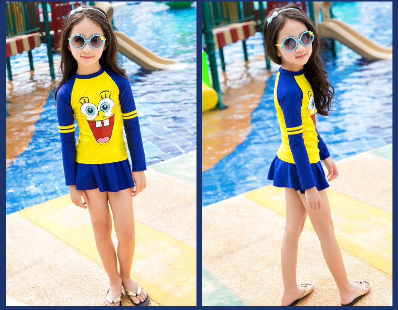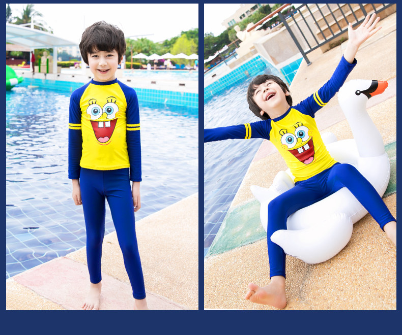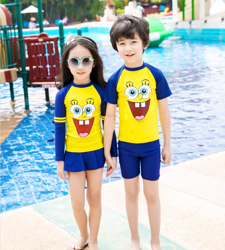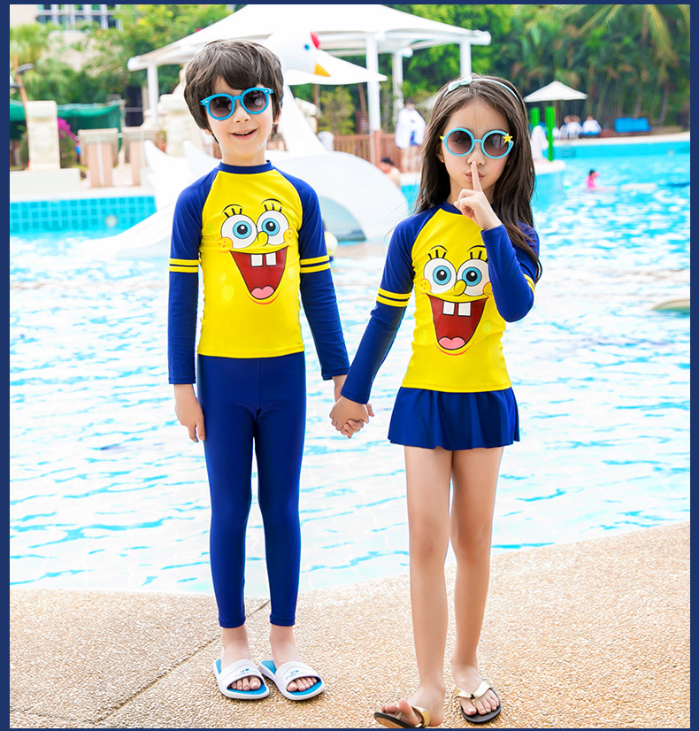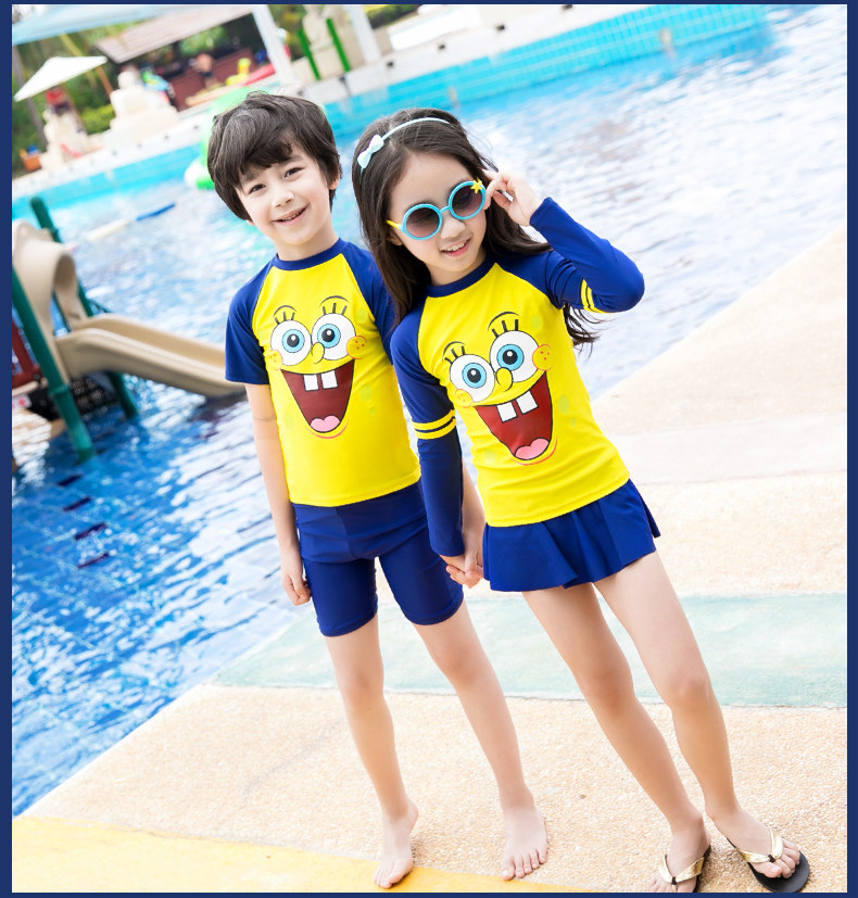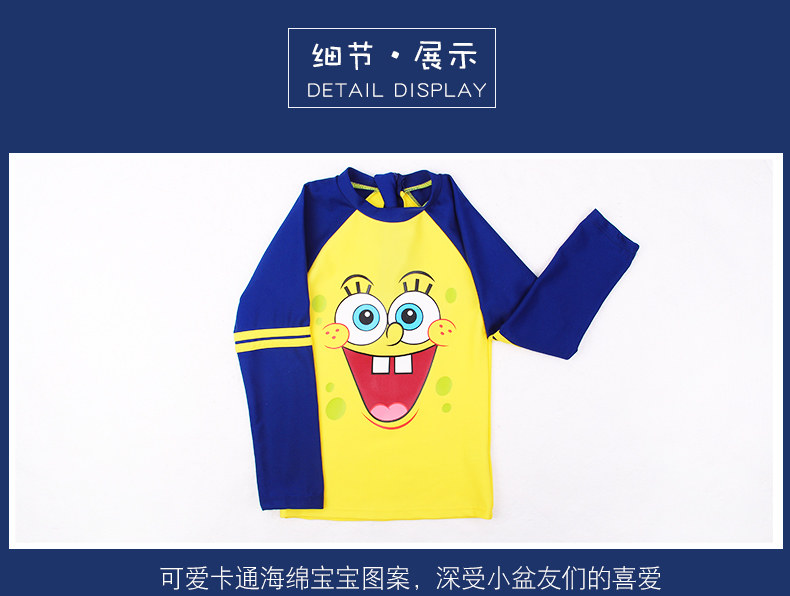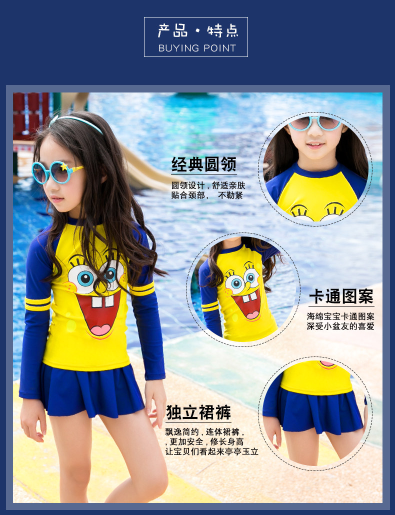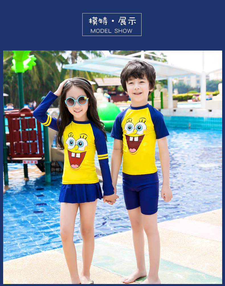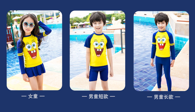 海绵宝宝儿童分体泳衣男童女孩裙式中大童防晒宝宝游泳衣潜水服
