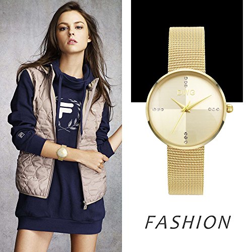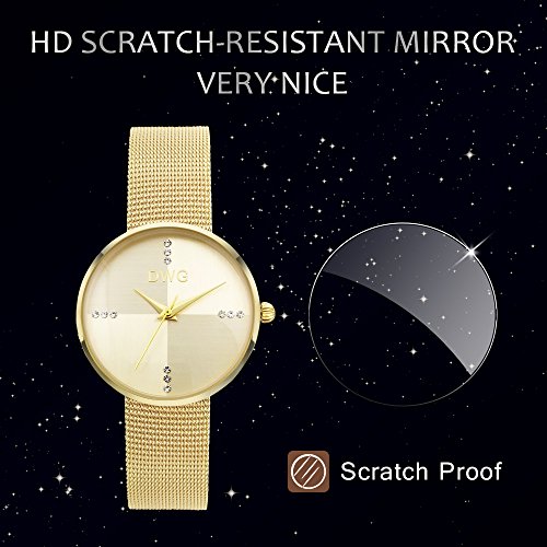 - A top fashion accessory. Alloy case and stainless steel back cover, strong and sturdy in structure. High hardness glass mirror, scratch and wear resistant.,Mesh Strap and Hook buckle, adjust easily