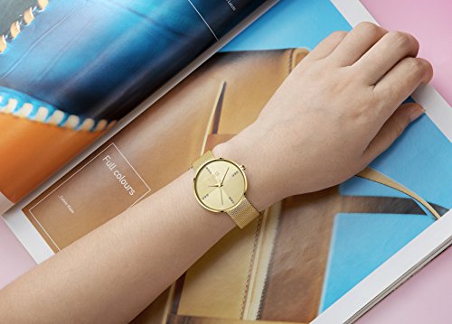 - Ultra thin dial(0.35 inches) stainless steel strap quartz wrist watch,Light weight(1.4 OZ) and comfortable to wear