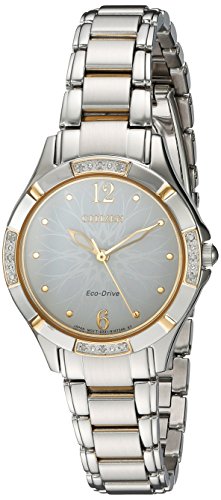 LADIES ECO-DRIVE DIAMOND WATCH: Modern appeal and sleek design make this Ladies Eco-Drive timepiece the finishing touch to any watch collection. Featured with 12 diamonds set in the bezel, a two-tone stainless steel case and bracelet with a white dial.Feature