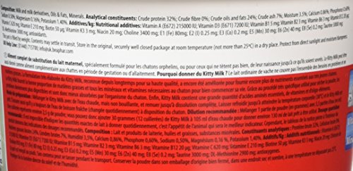 -. Feature : A complete milk replacer food / Specially formulated for orphan kittens and those not suckling well / Contains vitamins and minerals / Contains taurine, essential for cats