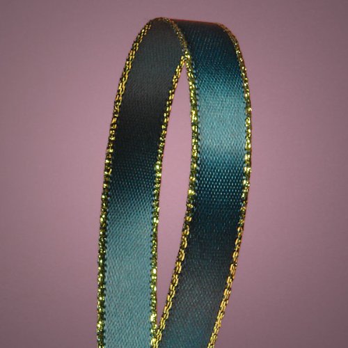 Hunter Green Satin Ribbon with Gold Edges, 3/8" X 50Yd