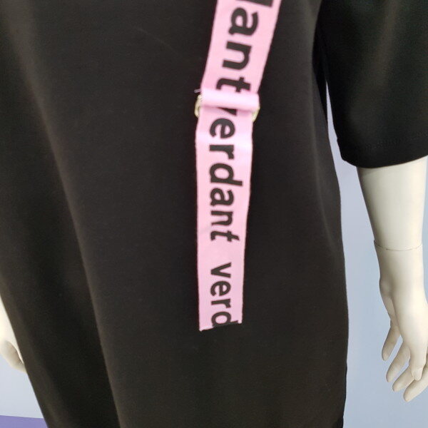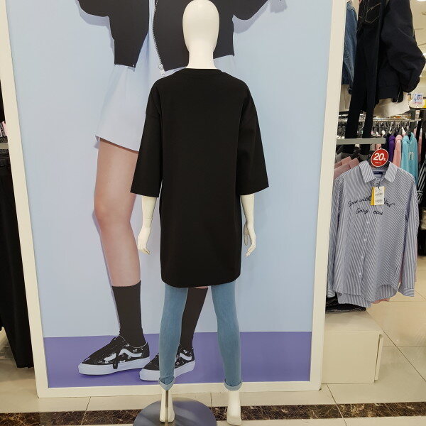 여성용 긴 기장 테잎 반팔 티셔츠 입니다.캐쥬얼하게 연출 할수 있는 상품이며긴 기장의 길이감이 레깅스나 스키니 팬츠와도 잘 어울리는 아이템 입니다.