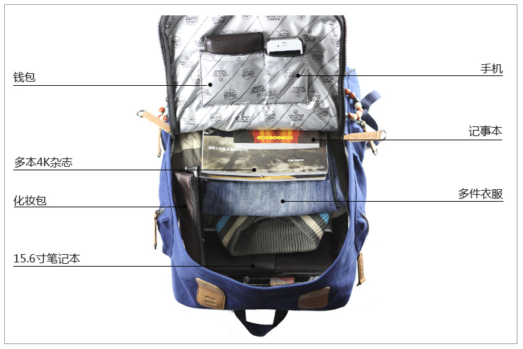 internal structure: zipper pocket cell phone pocket document bag computer pocket outside the bag