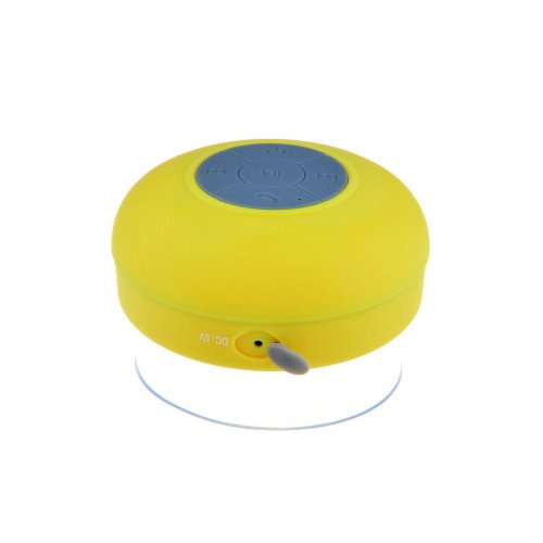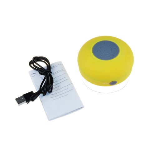 -. Feature : Unique suction cup and waterproof design can make the speaker used when you take shower or driving / Stereo Bluetooth speaker, supporting A2DP/AVRCP, allow you enjoy wireless HI-FI stereo music / Built-in mic for you to answer phone call / Built-in rechargeable battery / Suitable for car, bedroom, wash room, kitchen, office, conference, business trip, vacation, etc.