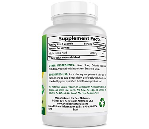 200 mg of ALA - Alpha Liopic Acid per capsule - 120 Capsules per bottle