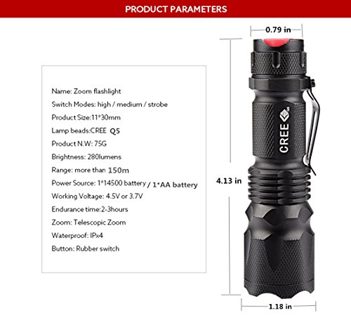 Powerful LED Zoomable Flashlight 3 Modes Torch Mini Flash Light Bike Pocket LED Zoomable Lamp For Hunting (black)