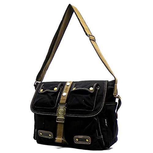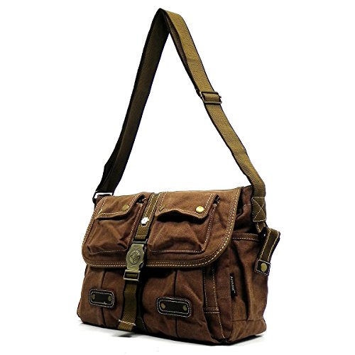 -. Brand : AHMIK -. Department : unisex-adult -. Feature : Cotton Canvas & Brass-tone hardware / Zip closure & Flap with Push-lock closure / Adjustable Shoulder Strap (24"~48"). / Interior lining with multifunctional slip pockets and a back wall zip pocket / L 14" * H 11" * W 5" -. Model : B3114 -. PackageQuantity : 1 -. ProductGroup : Apparel -. ProductTypeName : LAGE -. Title : Ahmik Military Canvas Vintage Messenger Bag Cross Body Bag 3114