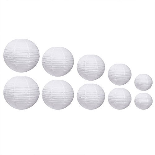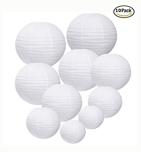 White Round Chinese Paper Lanterns for Wedding and Birthday Party Decorations and Centerpieces, 10 - Pack (4",6",8",10",12")