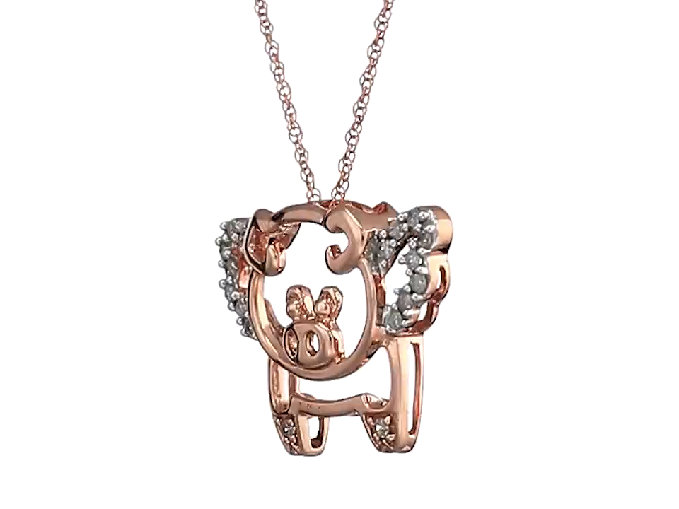 10k Rose Gold Diamond Flying Pig Pendant Necklace (1/10 cttw, I-J Color, I2-I3 Clarity)