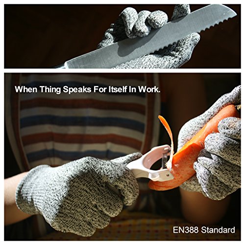 - MULTI-PURPOSE: cutting and slicing meat and vegetables in the kitchen, sharpining knife, oyster shucking, filleting fish, wood carving, handling sharp tools or picking up broken glass, carpentry works, and so much more.. STRONGLY RECOMMENDED to wear the gloves using MANDOLINE, KNIVES, SLICER, GRATER.