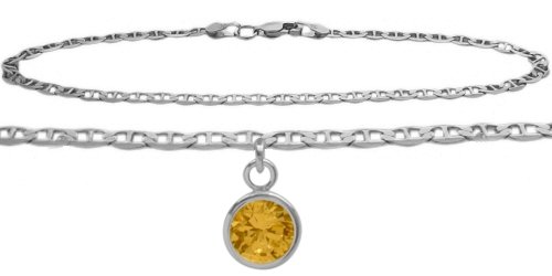 -. Title : 10K White Gold Mariner Anklet with Genuine Citrine Round Charm