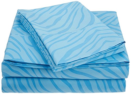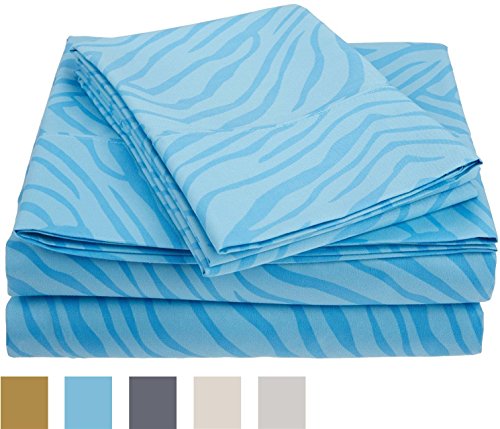 1800 Series 100% Brushed Microfiber, Deep Pocket, Wrinkle Resistant 4-Piece Full Bed Sheet Set, Animal Print, Blue