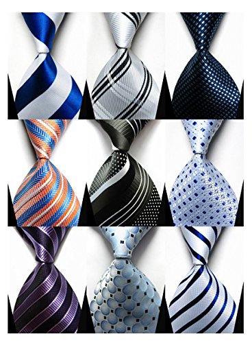 YanLen Lot 9 PCS Classic Men's 100% Silk Tie Necktie Woven JACQUARD Neck Ties (Set 2)