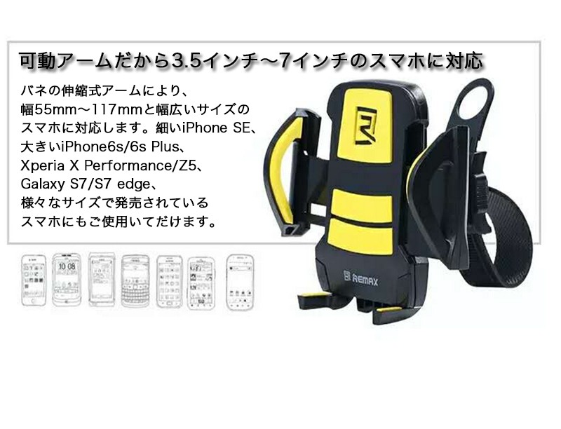 ★「対応機種」iPhone SONY Xperia Galaxy 等多機種対応★「カラー」グレー(灰)、イエロー(黄)★「商品特徴」移動中の安定感が絶妙!スマホをナビの代わりに、移動中のスマホホルダーに可動アームだから3.5インチ~6インチのスマホに対応、ドライブレコーダーとして使えます。ポリウレタン素材のクリップに滑り止めゴムをつけて、スマホをしっかり保護します。★「キーワード」iPhone SONY Xperia Galaxy 等多機種対応 ホルダー 自転車用 ホルダー スタンド カーマウント マルチホルダー 落下防止 回転可能 ピンチ調整 3.5~7インチ