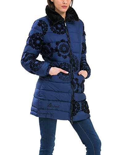 Zip-front puffer jacket featuring faux-fur collar and lace medallion appliques cascading from sleeve to hem Flap patch pocket at sleeve Brand : Desigual Item model num : 58E29Y8 MPN(PartNumber) : 58E29Y8-2000 EAN : 8434101318290 Product Dimensions(LxWxH) :