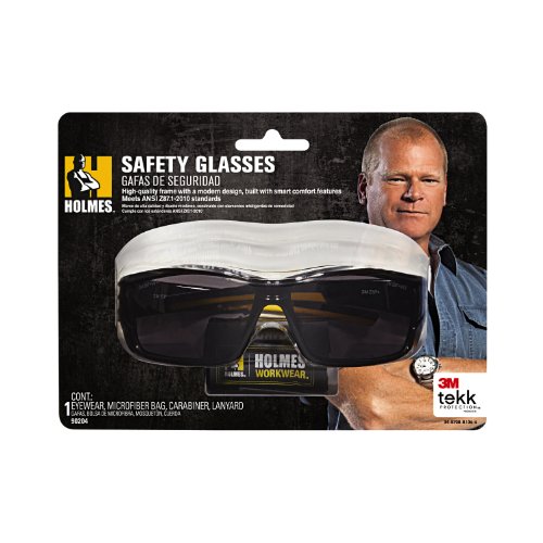 3M Holmes Workwear Safety Eyewear, Black Frame, Yellow Accented Temples, Dark Lens, Carrying Bag
