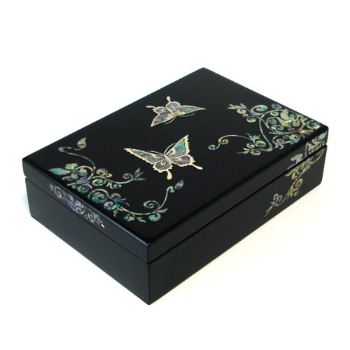 -. Binding : Kitchen -. Brand : Antique Alive Jewelry Box -. EAN : 0662425700479 -. Feature : Beautiful design and iridescent colors of mother of pearl / Individually handcrafted with unique Korean traditional mother of pearl inlay technique that have lasted 1,000 years / Size: 9.1"W x 6.3"D x 2.6"H (23 x 16 x 6.5cm) -. Label : Antique Alive -. Manufacturer : Antique Alive -. ProductGroup : Home -. ProductTypeName : HOME -. Publisher : Antique Alive -. Studio : Antique Alive -. Title : Mother of Pearl Butterfly Asian Lacquer Women Black Small Wooden Mirror Travel Jewelry Trinket Keepsake Treasure Gift Girls Jewel Ring Box Chest Case Organizer -. UPC : 662425700479