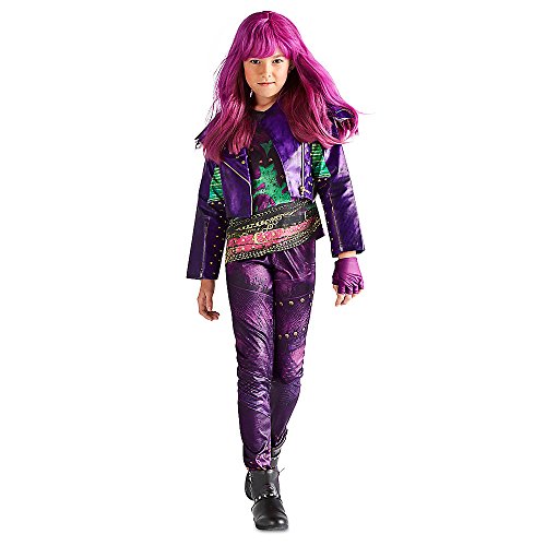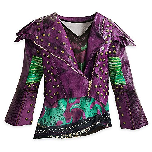 Cast a spell over every masquerade party in the diva drag of Descendants 2. A leather look biker jacket tops a synthetic stretch print tee and leggings - plus fingerless glove - for that authentic Mal look you've coveted.Feature