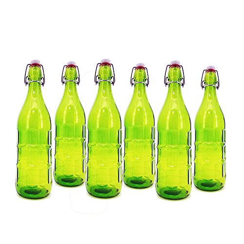 Modern Home 1L/34oz Culaccino Swing Top Round Glass Bottle - Textured Squares Lime Green - Set of 6