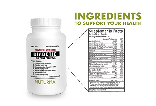 100% ALL NATURAL - The unique combination of this blend is crafted to help reduce glucose absorption and glucose production by your body. Contains Alpha Lipoic Acid, Gymnema Leaf, Green Tea Leaf, Banaba Leaf, Bitter Melon, Turmeric Root, Beta Glucan, Vanadium, Calcium, Iodine, Magnesium, Zinc, Chromium, Vitamin A, C, D, E, B1, B2, B3, B5, B6, B7, B9, & B12. Nuturna utilizes high quality, scientific evidence based findings in the formulation of its products, You get the support you deserve...