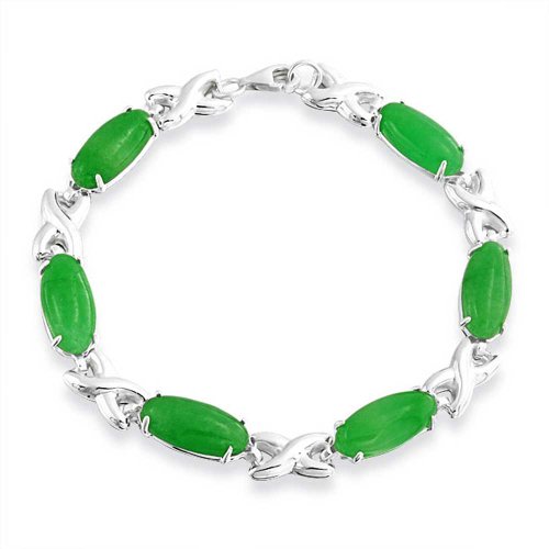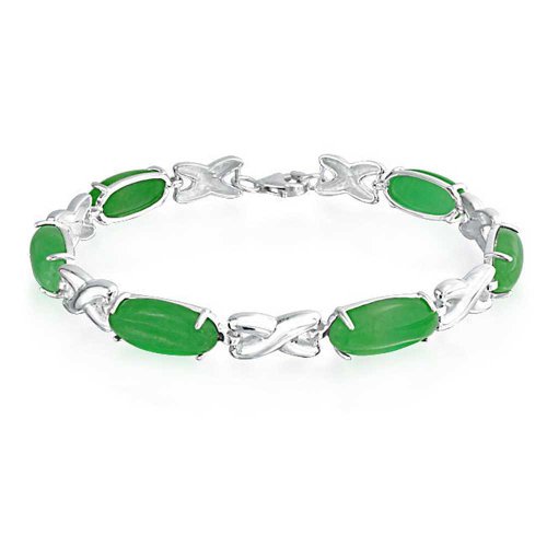 -. Title : Bling Jewelry 925 Silver Oval Green Jade Hugs and Kisses XO Link Bracelet 7.5in