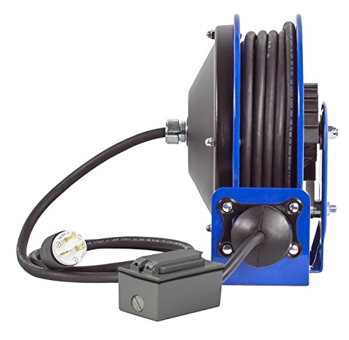Coxreels PC10-3012-F Compact efficient heavy duty power cord reel with a duplex G.F.C.I. metal industrial receptacle
