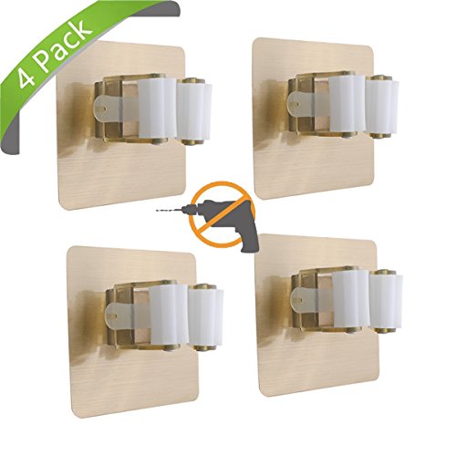 WizPower Mop and Broom Holder, Self Adhesive Wall mounted Rack Tool storage No Drilling Anti-Slip Organization Hanger for Laundry Room Kitchen Garden Garage and Bathroom (4 Packs)