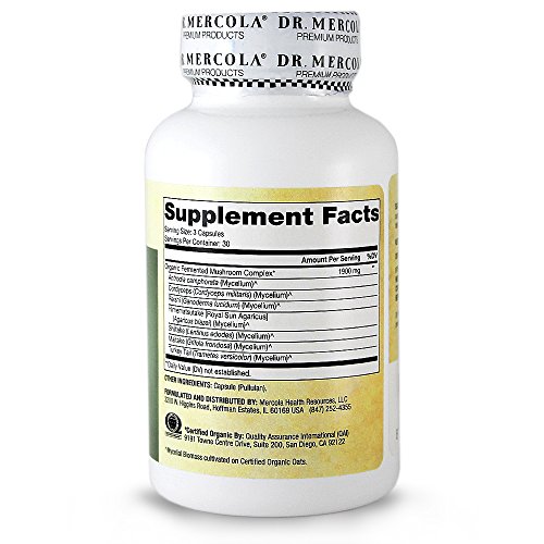 Dr Mercola Fermented Mushroom Complex may support immune function, promote cellular growth, protect against stressors, support detoxification, preserve cellular structure, and promote healthy gut flora and digestion.